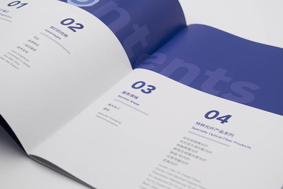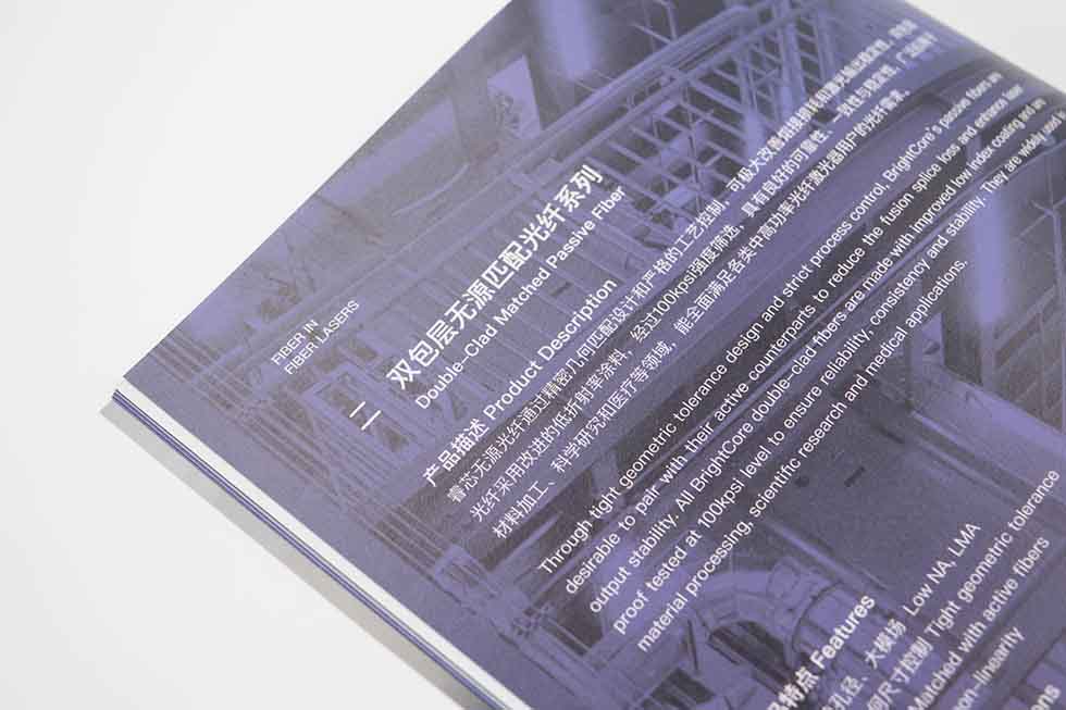 項目背景:武漢睿芯特種光纖有限責(zé)任公司成立于2013年,是國有控股的高科技企業(yè)。主要從事光纖、特種光纖、光學(xué)元器件的研究、開發(fā)、生產(chǎn)、銷售、維修服務(wù)、技術(shù)咨詢等。從事以上產(chǎn)品的貨物進(jìn)出口、技術(shù)進(jìn)出口和代理進(jìn)出口工作。艾的爾設(shè)計承接其企業(yè)宣傳冊設(shè)計及制作,成立品牌設(shè)計小組,與企業(yè)進(jìn)行深入溝通,明確企業(yè)對于畫冊設(shè)計的需求,白色與紫色相結(jié)合,與手冊主題相結(jié)合,手冊是特種光纖,產(chǎn)品手冊&服務(wù)。