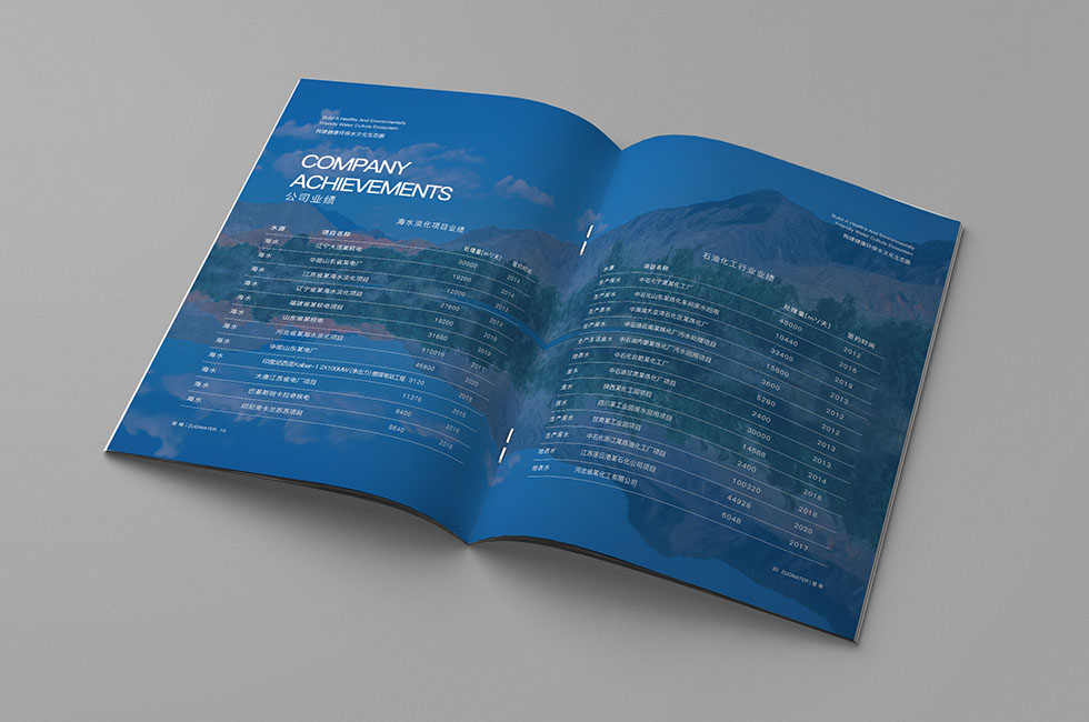 項目背景:楚格是以水處理工程設(shè)計與施工、水處理技術(shù)開發(fā)與設(shè)施運營、環(huán)保成套設(shè)備制造安裝為主體的高新技術(shù)企業(yè),產(chǎn)品涉及膜技術(shù)產(chǎn)品、市政給水、市政污水、工藝給水、工業(yè)污水、工業(yè)循環(huán)水、生活污水與中水回用處理等水處理領(lǐng)域,可提供高效的項目咨詢與評價、工程設(shè)計與技術(shù)支持等全過程高品質(zhì)的服務(wù)。艾的爾設(shè)計承接其企業(yè)宣傳冊設(shè)計及制作,成立品牌設(shè)計小組,與企業(yè)進(jìn)行深入溝通,明確企業(yè)對于畫冊設(shè)計的需求,封面采用藍(lán)色為主,突顯