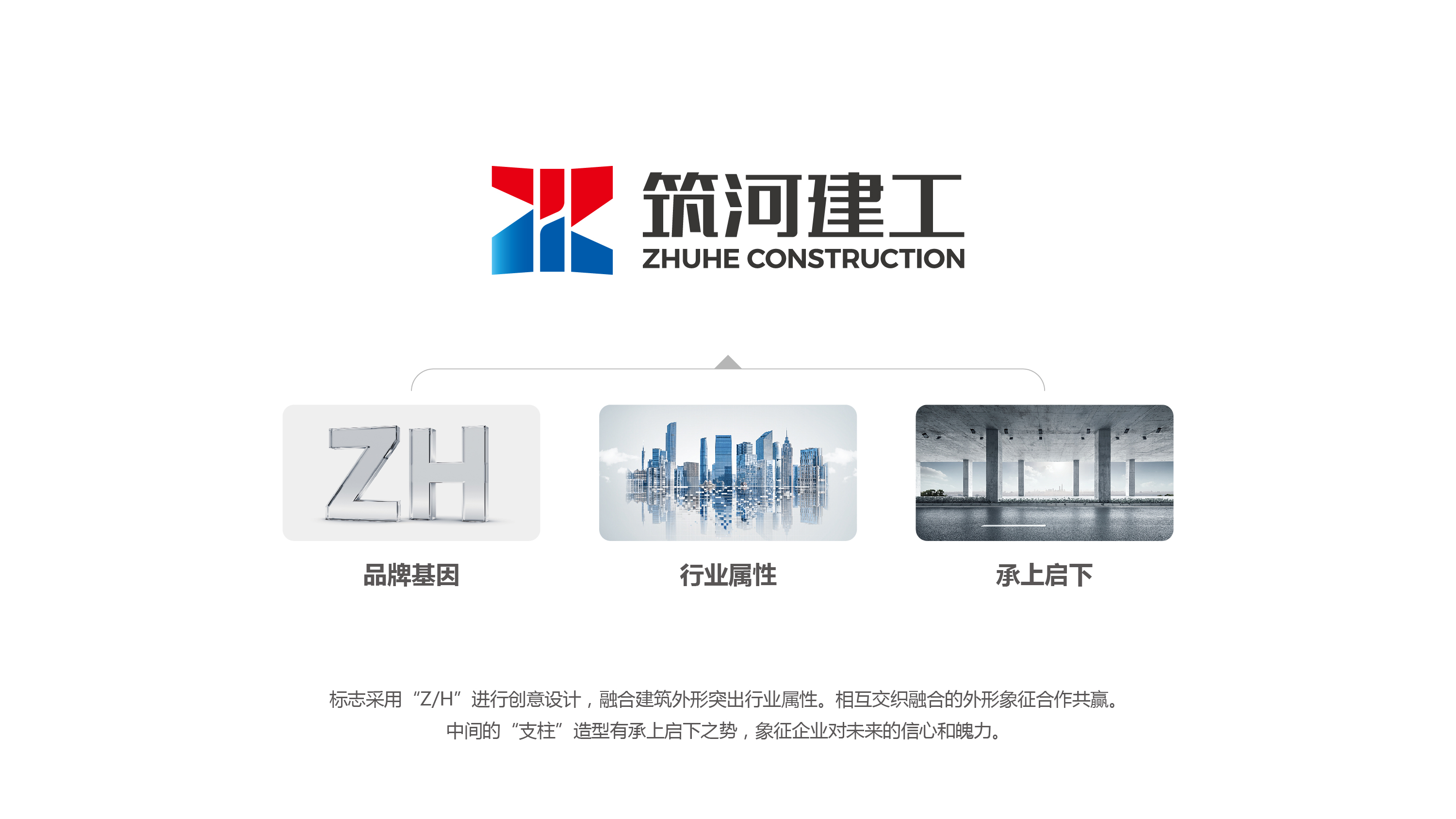 項(xiàng)目背景:筑河建工作為黃岡建筑產(chǎn)業(yè)轉(zhuǎn)型發(fā)展的試驗(yàn)田,是一家具有發(fā)展前景、充滿年輕活力的企業(yè),也是黃岡、團(tuán)風(fēng)合力打造的一張建筑業(yè)“新名片”。筑河建工具有起點(diǎn)高、基礎(chǔ)實(shí)、潛力大的特點(diǎn)及優(yōu)勢。在行業(yè)發(fā)展的洪流中,公司不斷尋求新的機(jī)遇、持續(xù)提升綜合實(shí)力,積極推動綠色建造、智慧建造、精益建造,建設(shè)高品質(zhì)、示范型精品工程,服務(wù)經(jīng)濟(jì)社會發(fā)展,向著打造一流企業(yè)的目標(biāo)邁進(jìn)。艾的爾團(tuán)隊(duì)承接該項(xiàng)目,由品牌總監(jiān)牽頭,主動與筑河建工對接,成立品牌VI設(shè)計(jì)小組,經(jīng)過多次對接溝通,設(shè)計(jì)小組反復(fù)修改,最后完成從概念到形象生動的塑造呈現(xiàn)。筑河建工標(biāo)志logo采用“Z/H”進(jìn)行創(chuàng)意設(shè)計(jì),融合建筑外形突出行業(yè)屬性。相互交織融合的外形象征合作共贏。中間的“支柱”造型有承上啟下之勢,象征企業(yè)對未來的信心和魄力。
