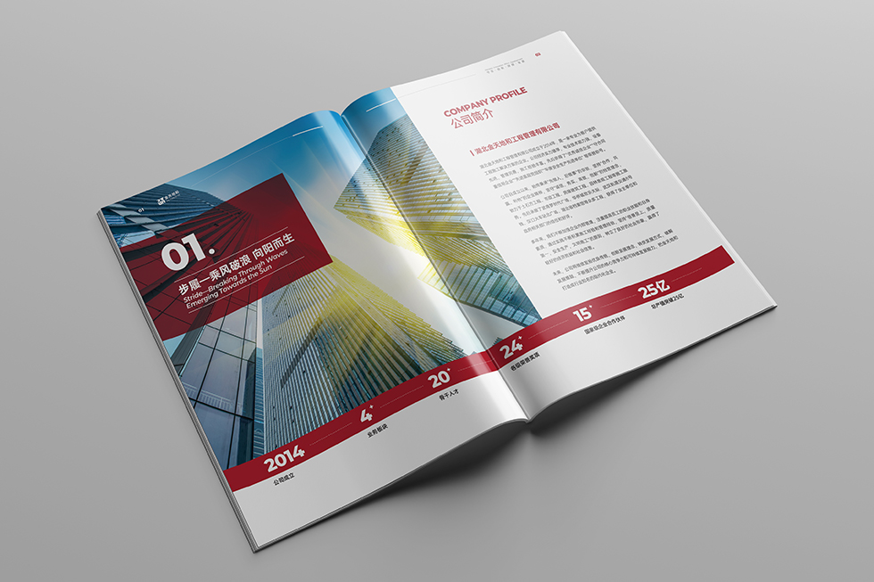 項(xiàng)目背景:湖北金天地和工程管理有限公司成立于2014年,是一家專業(yè)為客戶提供工程施工解決方案的企業(yè)。公司經(jīng)濟(jì)實(shí)力雄厚,專業(yè)技術(shù)能力強(qiáng),設(shè)備先進(jìn),管理完善,施工經(jīng)驗(yàn)豐富。艾的爾設(shè)計(jì)通過與企業(yè)進(jìn)行深入溝通,明確企業(yè)對(duì)于畫冊(cè)設(shè)計(jì)的需求,畫冊(cè)封面內(nèi)容簡潔并突出重點(diǎn),,主色調(diào)采用紅白搭配,對(duì)比強(qiáng)烈,容易吸引注意力。版面圖文并茂,圖片與文字相輔相成,均衡、合理,生動(dòng)活潑的色彩搭配與豐富的細(xì)節(jié),給人以飽滿的視覺印象。