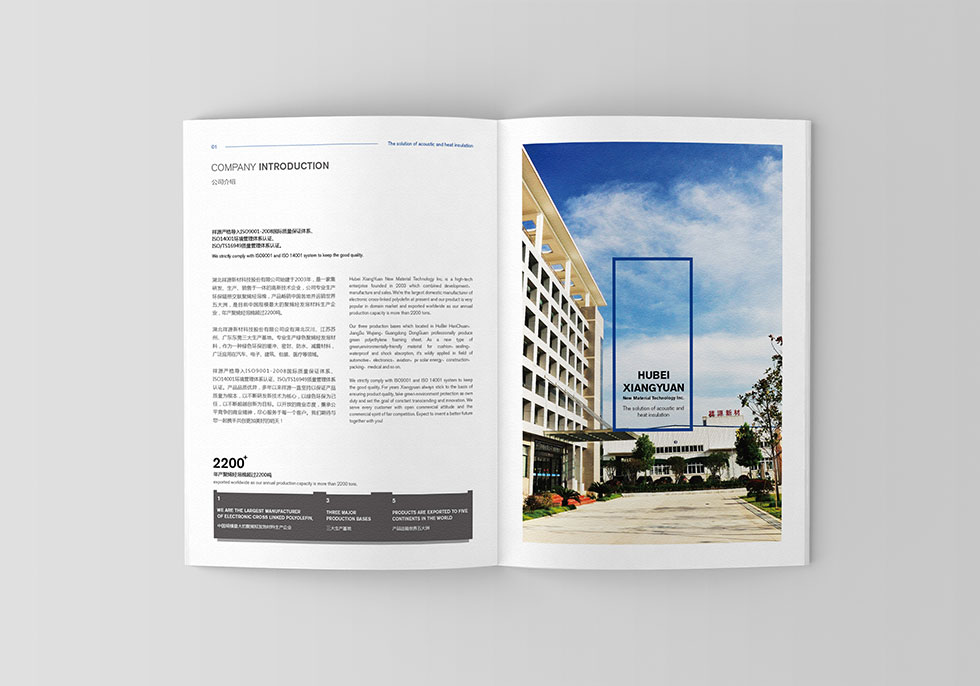 項目背景:湖北祥源新材科技股份有限公司始建于2003年,是一家集研發(fā)、生產(chǎn)、銷售于一體的高新技術(shù)企業(yè),公司專業(yè)生產(chǎn)環(huán)保聚烯烴泡棉,產(chǎn)品暢銷全國各地并遠銷世界五大洲,是目前國內(nèi)規(guī)模最大的聚烯烴發(fā)泡材料生產(chǎn)企業(yè)。艾的爾承接其畫冊設(shè)計制作,成立品牌設(shè)計小組,與企業(yè)進行深入溝通,明確企業(yè)對于畫冊設(shè)計的需求,通過對企業(yè)行業(yè)屬性和主要服務(wù)的深入了解和研究,該畫冊設(shè)計主要以非常簡約的發(fā)現(xiàn)手法設(shè)計,黃金比例分割主題標(biāo)題在左,內(nèi)容在右的版式排版。